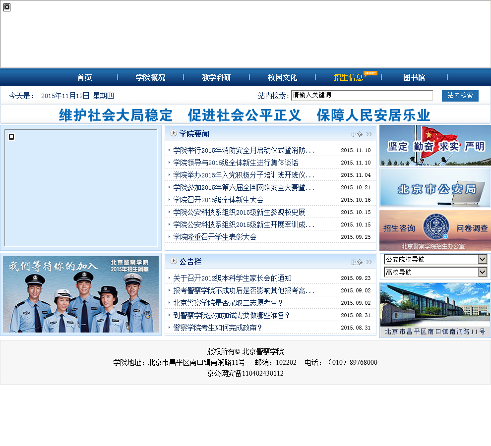 北京警察学院于2020-09-08被0702投稿网收录,网站相关信息来自互联网或网友分享!由于(北京警察学院)网站内容动态属性,时刻在变动,本站无法保证(北京警察学院)网站内容真实可靠!请大家查阅时,谨慎选择、自辩真伪,感谢您的理解与支持。如果您在访问(北京警察学院)时发现:网址失效、或网站存在非法等相关内容,请及时联系我们,我们会第一时间处理。