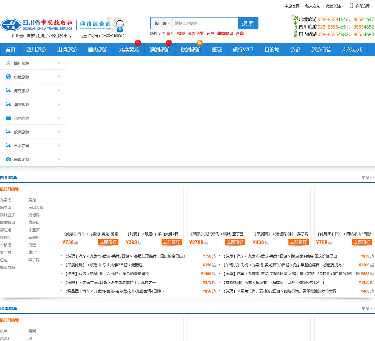 四川省中国旅行社网站提供国内旅游、出境旅游线路报价和好景点推荐,出国旅游签证,欧洲、美国、马代、澳洲、中东非、东南亚自由行攻略。四川旅行社--您出行的好驴友!
