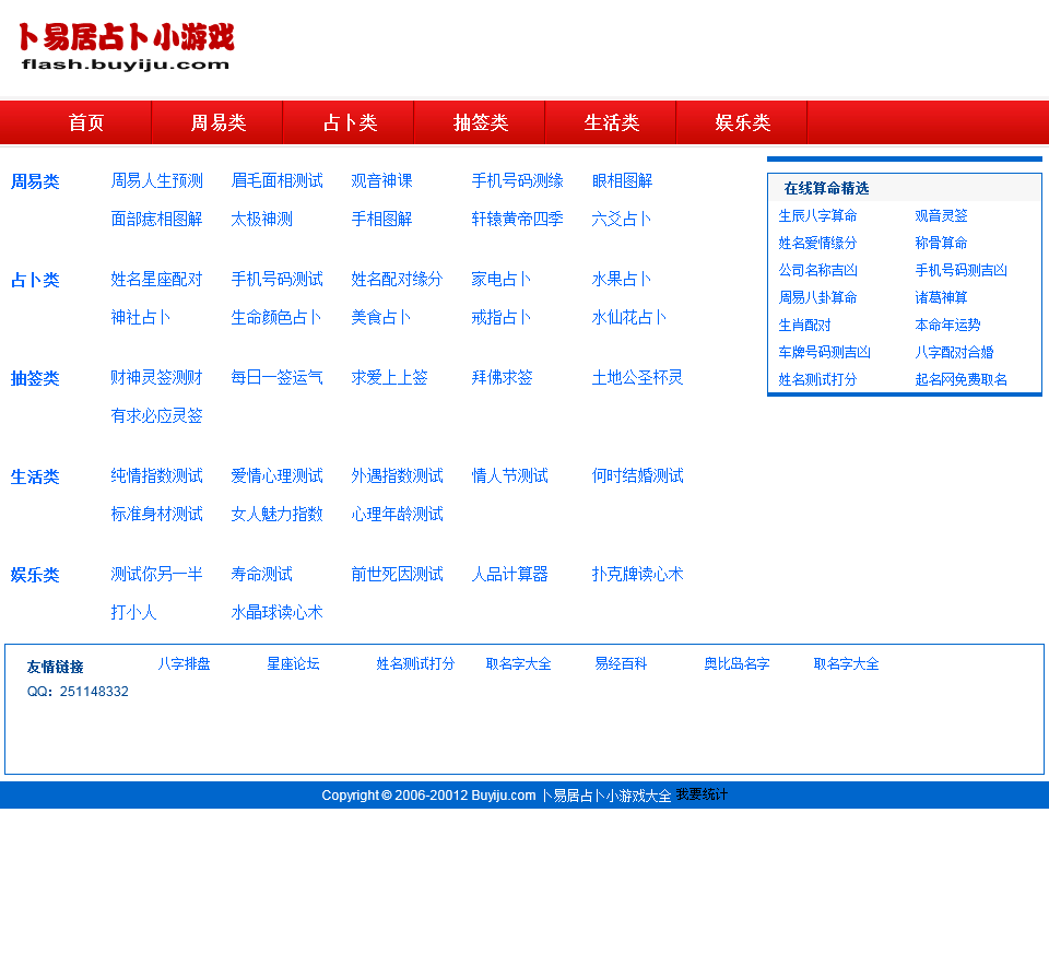 当前位置:主页 > 网站目录 > 卜易居在线占卜小游戏大全flash.buyiju.com