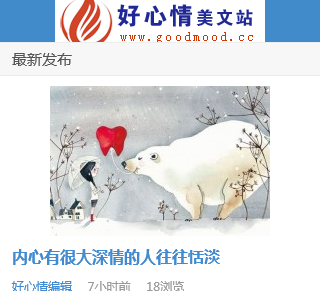 好心情美文站于2020-09-09被0702投稿网收录,网站相关信息来自互联网或网友分享!由于(好心情美文站)网站内容动态属性,时刻在变动,本站无法保证(好心情美文站)网站内容真实可靠!请大家查阅时,谨慎选择、自辩真伪,感谢您的理解与支持。如果您在访问(好心情美文站)时发现:网址失效、或网站存在非法等相关内容,请及时联系我们,我们会第一时间处理。