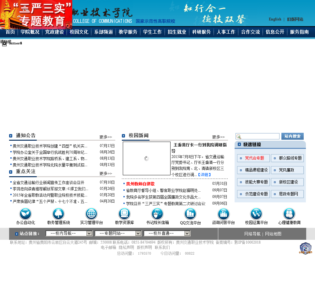 贵州交通职业技术学院于2020-09-12被0702投稿网收录,网站相关信息来自互联网或网友分享!由于(贵州交通职业技术学院)网站内容动态属性,时刻在变动,本站无法保证(贵州交通职业技术学院)网站内容真实可靠!请大家查阅时,谨慎选择、自辩真伪,感谢您的理解与支持。如果您在访问(贵州交通职业技术学院)时发现:网址失效、或网站存在非法等相关内容,请及时联系我们,我们会第一时间处理。