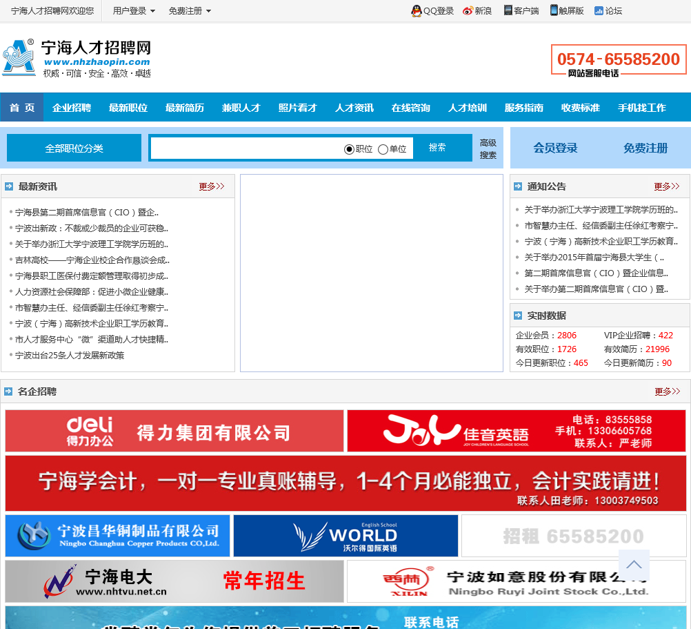 - 网站名称:宁海人才招聘网