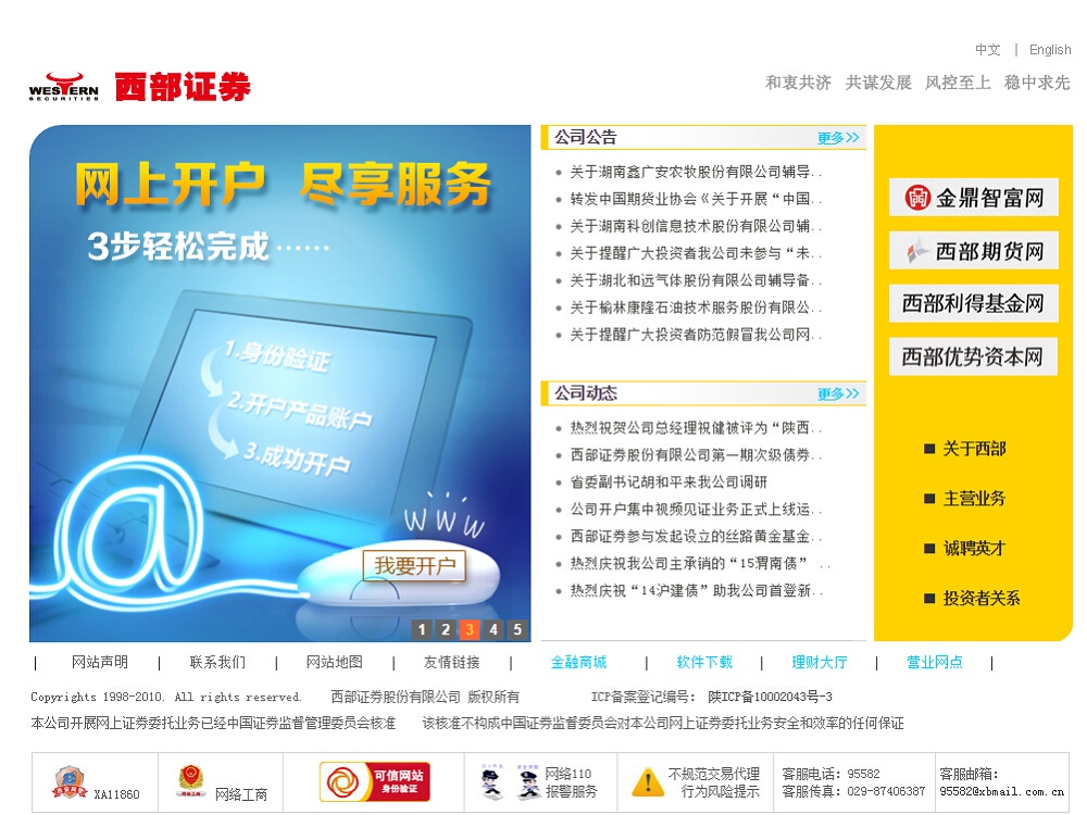 西部证券于2020-09-13被0702投稿网收录,网站相关信息来自互联网或网友分享!由于(西部证券)网站内容动态属性,时刻在变动,本站无法保证(西部证券)网站内容真实可靠!请大家查阅时,谨慎选择、自辩真伪,感谢您的理解与支持。如果您在访问(西部证券)时发现:网址失效、或网站存在非法等相关内容,请及时联系我们,我们会第一时间处理。