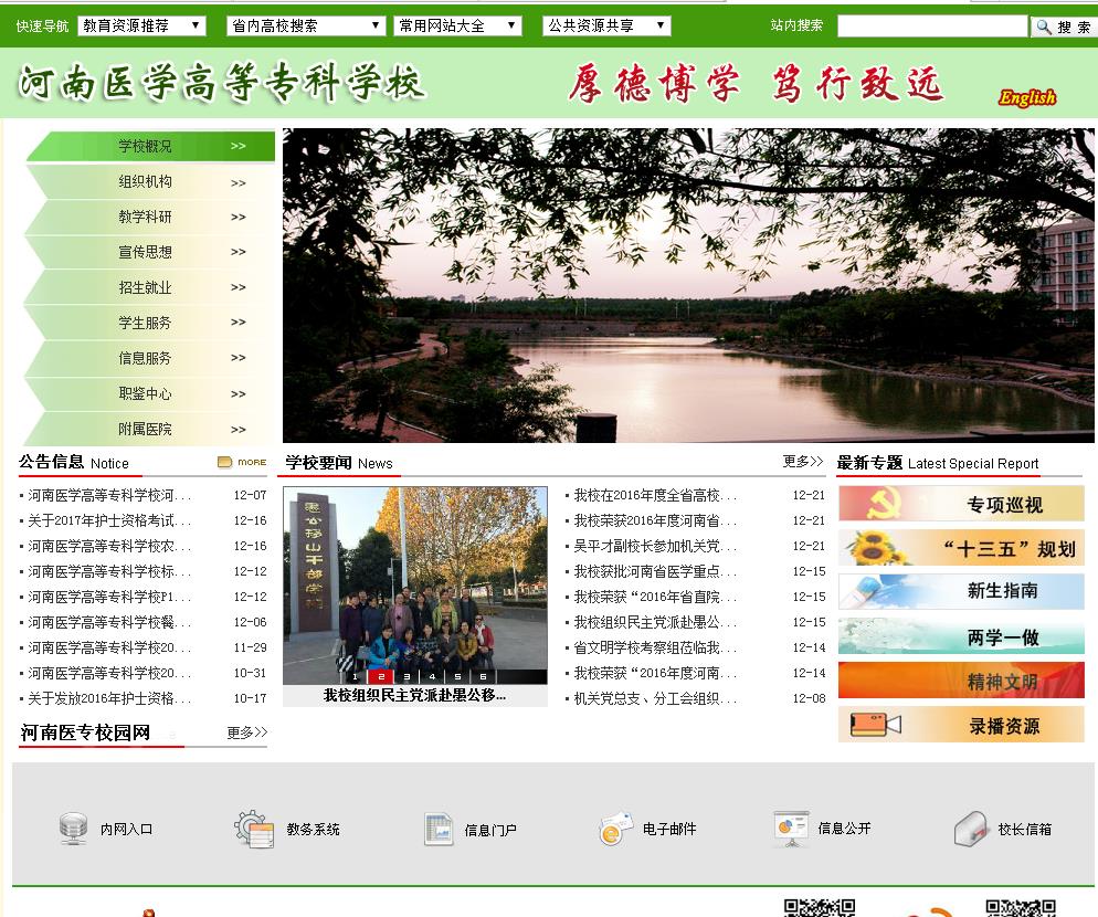 河南医学高等专科学校于2020-09-14被0702投稿网收录,网站相关信息来自互联网或网友分享!由于(河南医学高等专科学校)网站内容动态属性,时刻在变动,本站无法保证(河南医学高等专科学校)网站内容真实可靠!请大家查阅时,谨慎选择、自辩真伪,感谢您的理解与支持。如果您在访问(河南医学高等专科学校)时发现:网址失效、或网站存在非法等相关内容,请及时联系我们,我们会第一时间处理。