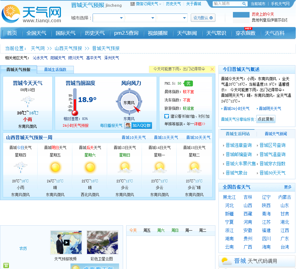 - 网站名称:晋城天气预报