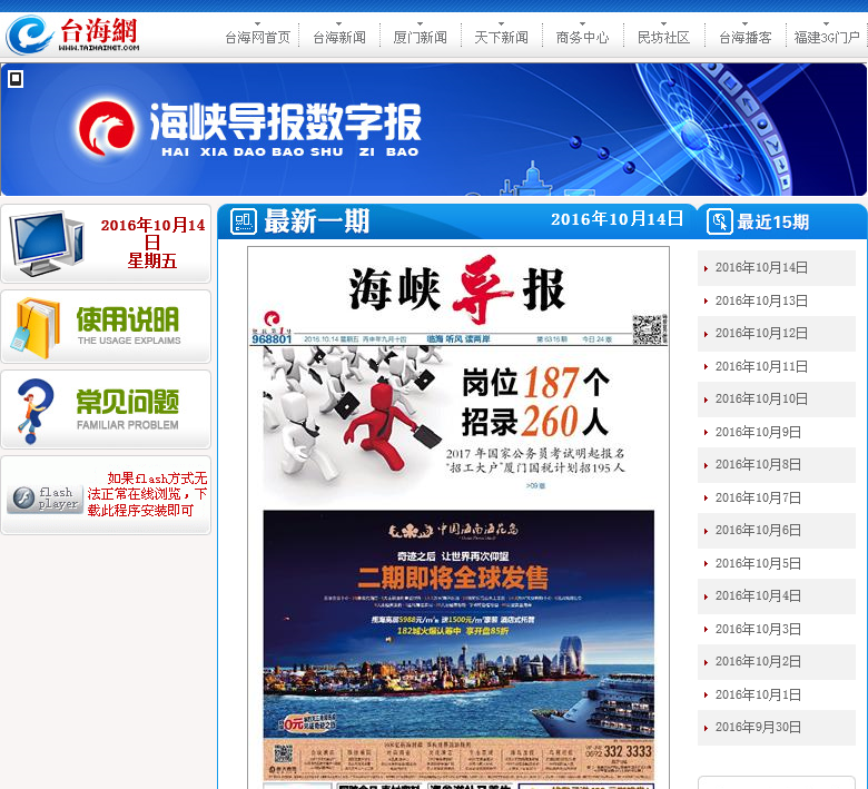 当前位置:主页 > 网站目录 > 海峡导报多媒体数字报epaper.taihainet.com