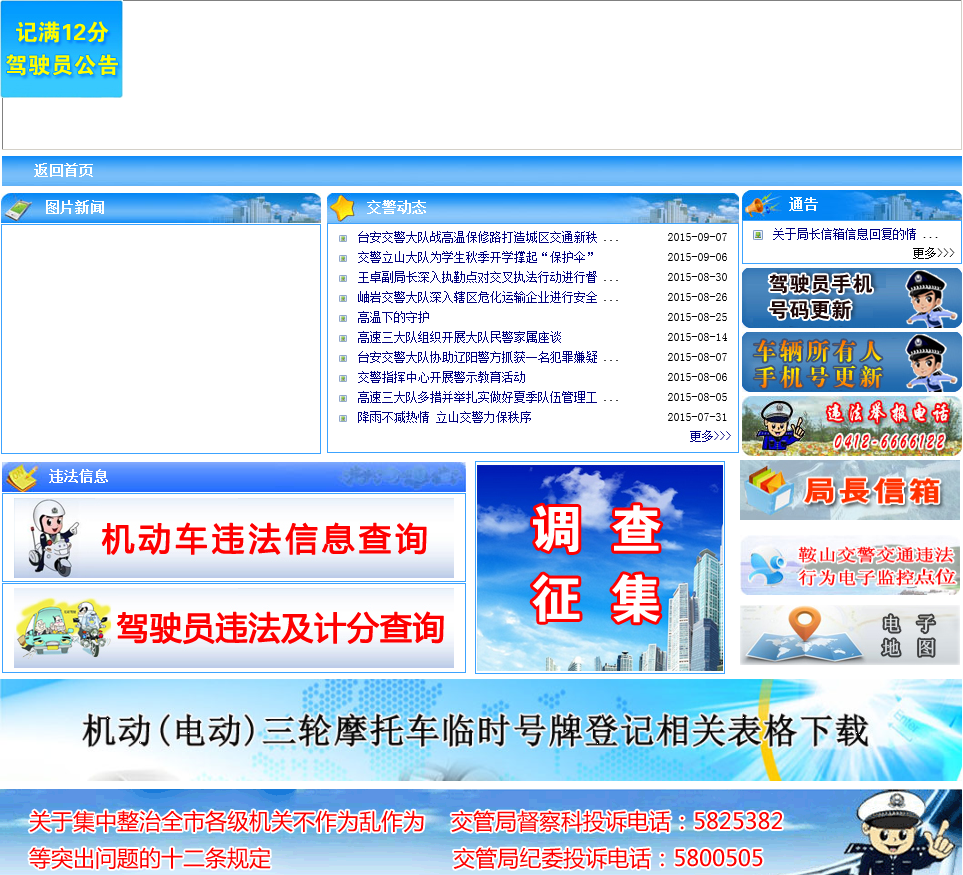 鞍山公安交通信息网于2020-09-17被0702投稿网收录,网站相关信息来自互联网或网友分享!由于(鞍山公安交通信息网)网站内容动态属性,时刻在变动,本站无法保证(鞍山公安交通信息网)网站内容真实可靠!请大家查阅时,谨慎选择、自辩真伪,感谢您的理解与支持。如果您在访问(鞍山公安交通信息网)时发现:网址失效、或网站存在非法等相关内容,请及时联系我们,我们会第一时间处理。
