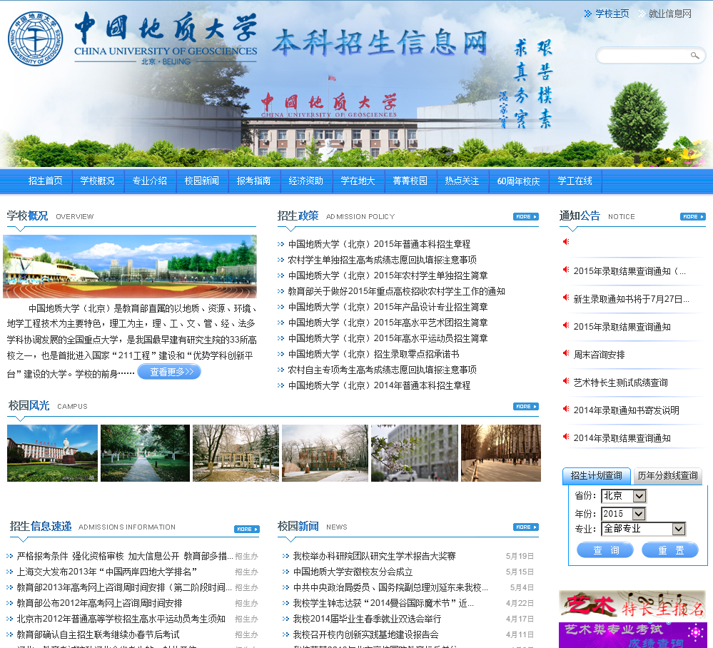 中国地质大学本科招生信息网是中国地质大学官网下的招生专网,主要针对想报考中国地质大学的考生,发布各类本科招生信息。
