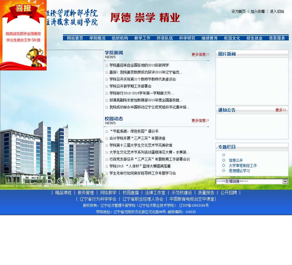 辽宁经济管理干部学院|辽宁经济职业技于2020-09-19被0702投稿网收录,网站相关信息来自互联网或网友分享!由于(辽宁经济管理干部学院|辽宁经济职业技)网站内容动态属性,时刻在变动,本站无法保证(辽宁经济管理干部学院|辽宁经济职业技)网站内容真实可靠!请大家查阅时,谨慎选择、自辩真伪,感谢您的理解与支持。如果您在访问(辽宁经济管理干部学院|辽宁经济职业技)时发现:网址失效、或网站存在非法等相关内容,请及时联系我们,我们会第一时间处理。