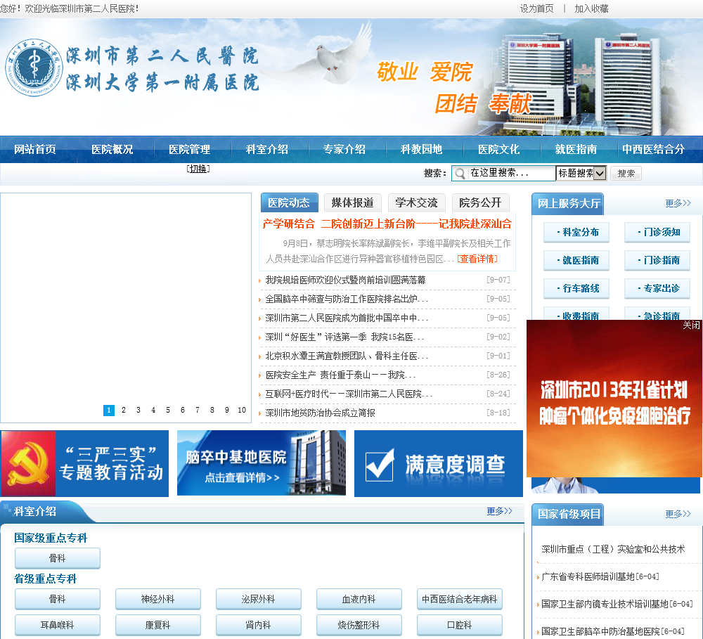 深圳市第二人民医院于2020-09-20被0702投稿网收录,网站相关信息来自互联网或网友分享!由于(深圳市第二人民医院)网站内容动态属性,时刻在变动,本站无法保证(深圳市第二人民医院)网站内容真实可靠!请大家查阅时,谨慎选择、自辩真伪,感谢您的理解与支持。如果您在访问(深圳市第二人民医院)时发现:网址失效、或网站存在非法等相关内容,请及时联系我们,我们会第一时间处理。
