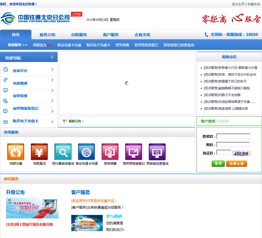 北京铁通网上营业厅于2020-09-20被0702投稿网收录,网站相关信息来自互联网或网友分享!由于(北京铁通网上营业厅)网站内容动态属性,时刻在变动,本站无法保证(北京铁通网上营业厅)网站内容真实可靠!请大家查阅时,谨慎选择、自辩真伪,感谢您的理解与支持。如果您在访问(北京铁通网上营业厅)时发现:网址失效、或网站存在非法等相关内容,请及时联系我们,我们会第一时间处理。