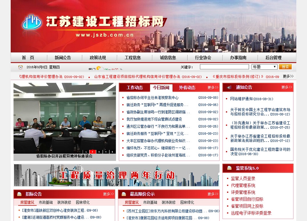 江苏建设招标投标网于2020-09-20被0702投稿网收录,网站相关信息来自互联网或网友分享!由于(江苏建设招标投标网)网站内容动态属性,时刻在变动,本站无法保证(江苏建设招标投标网)网站内容真实可靠!请大家查阅时,谨慎选择、自辩真伪,感谢您的理解与支持。如果您在访问(江苏建设招标投标网)时发现:网址失效、或网站存在非法等相关内容,请及时联系我们,我们会第一时间处理。