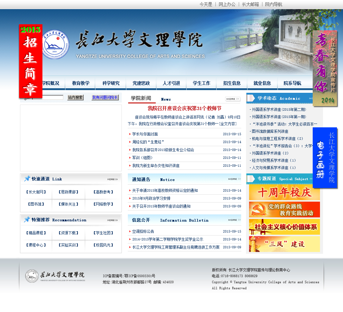 长江大学文理学院于2020-09-20被0702投稿网收录,网站相关信息来自互联网或网友分享!由于(长江大学文理学院)网站内容动态属性,时刻在变动,本站无法保证(长江大学文理学院)网站内容真实可靠!请大家查阅时,谨慎选择、自辩真伪,感谢您的理解与支持。如果您在访问(长江大学文理学院)时发现:网址失效、或网站存在非法等相关内容,请及时联系我们,我们会第一时间处理。