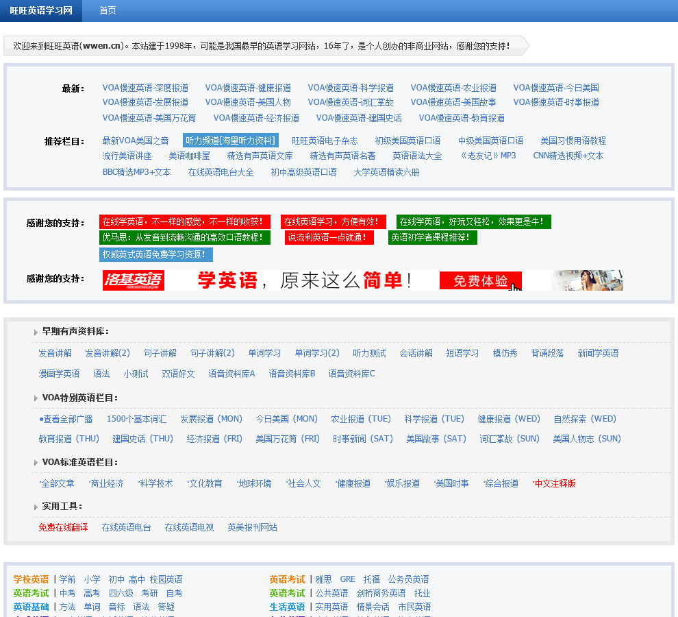 旺旺英语于2020-09-20被0702投稿网收录,网站相关信息来自互联网或网友分享!由于(旺旺英语)网站内容动态属性,时刻在变动,本站无法保证(旺旺英语)网站内容真实可靠!请大家查阅时,谨慎选择、自辩真伪,感谢您的理解与支持。如果您在访问(旺旺英语)时发现:网址失效、或网站存在非法等相关内容,请及时联系我们,我们会第一时间处理。