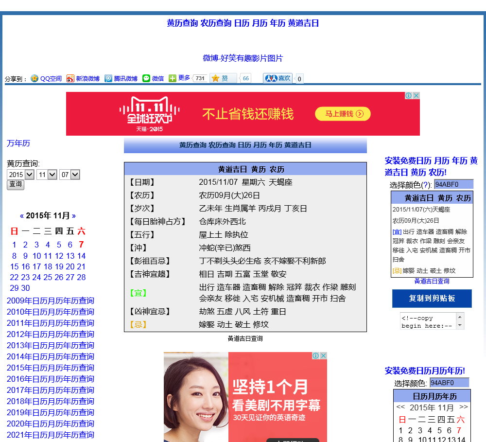 - 网站名称:黄历查询