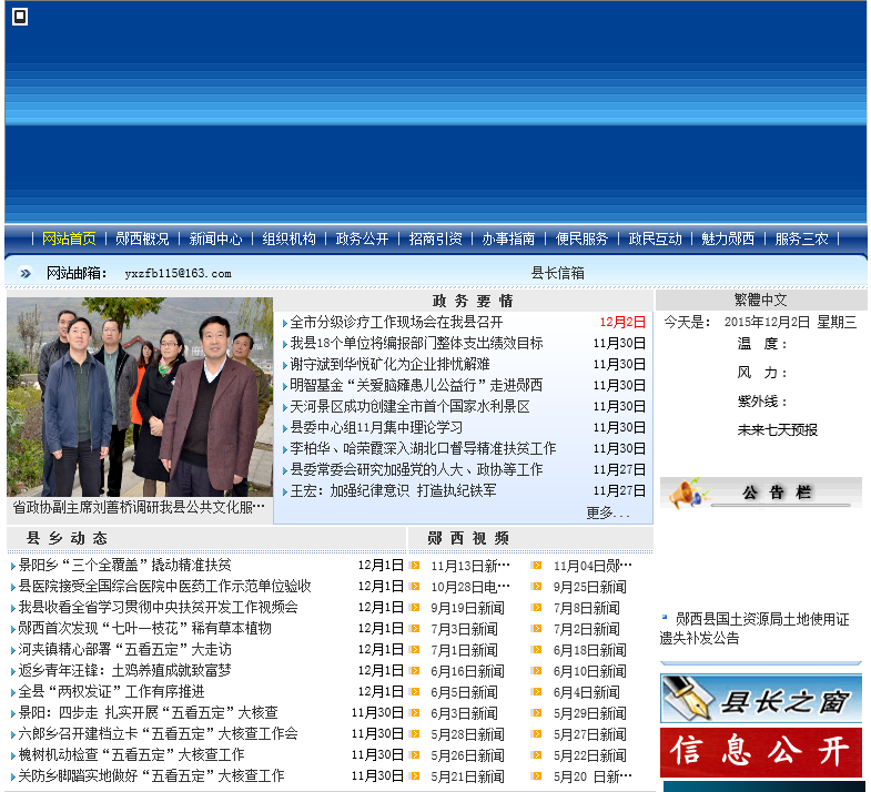 郧西县人民政府门户网站以地方政务、经济发展、公共服务为中心,为公众提供郧西县的政治、经济、社会、文化、招商引资等信息及政府部门的在线服务。