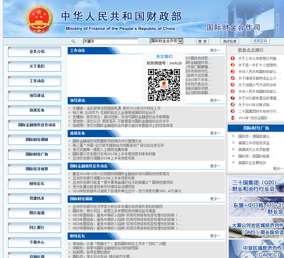 当前位置:主页 > 网站目录 > 财政部国际财金合作司gjs.mof.gov.cn