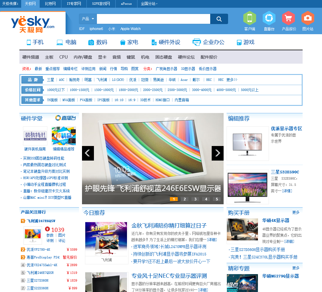 天极网DIY电脑硬件频道:提供显示器新闻,液晶显示器,显示器导购,三星显示器,LG显示器,飞利浦显示器,优派显示器等电脑显示器方面内容