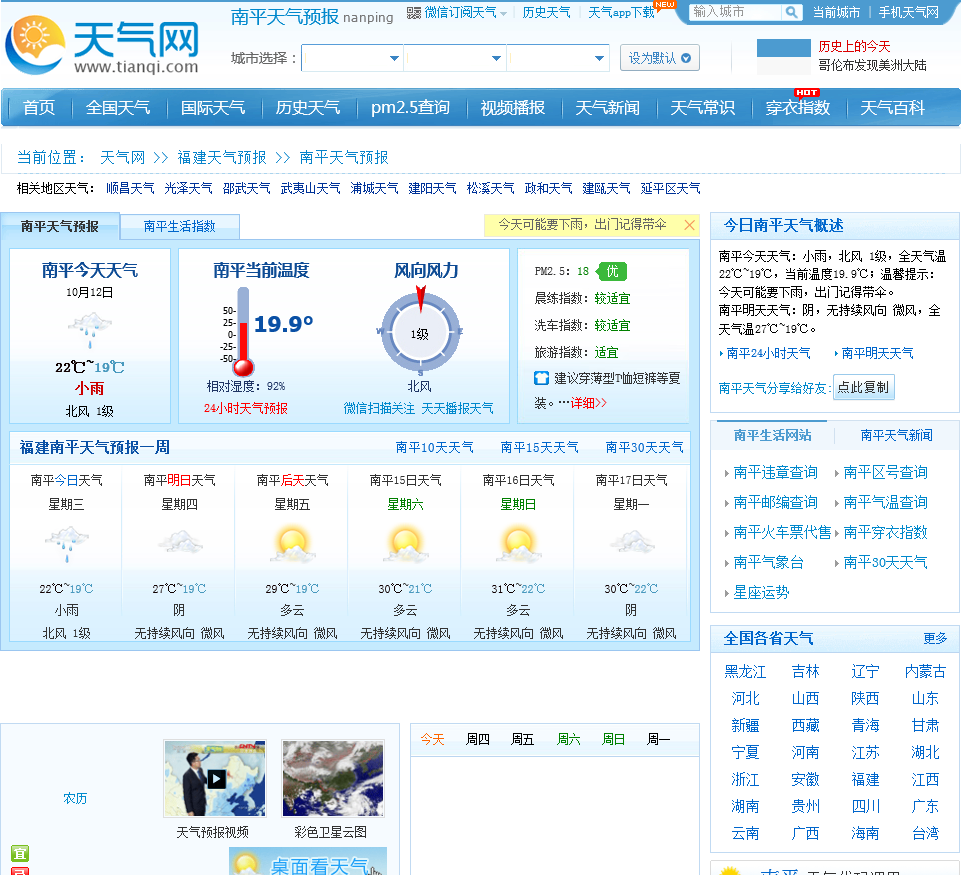 - 网站地址:nanping.tianqi.com