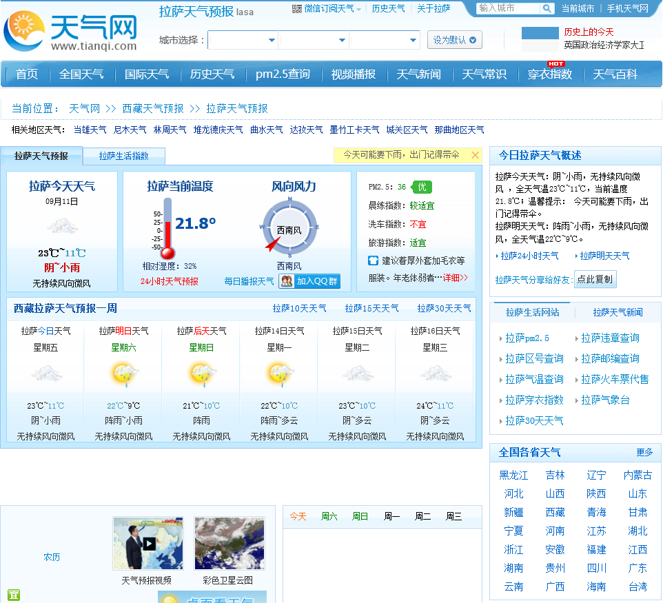 - 网站地址:lasa.tianqi.com
