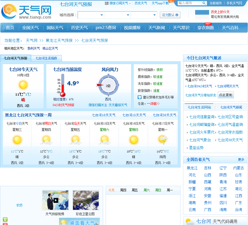 - 网站名称:七台河天气预报