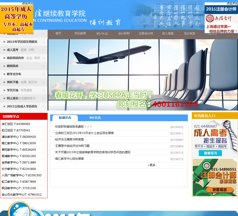 上海立信会计学院继续教育学院是上海立信会计学院设立的成人高等教育二级学院,自1982年开始成人教育招生、成人高考、成人高复、成人学历、会计上岗证、CPA、电算化、注册会计师,会计从业资格考试,并与美国注册管理会计师IMA协会合作开设CMA考试培训、与英国国际会计师公会合作AIA考试培训等国际会计课程,立信继...