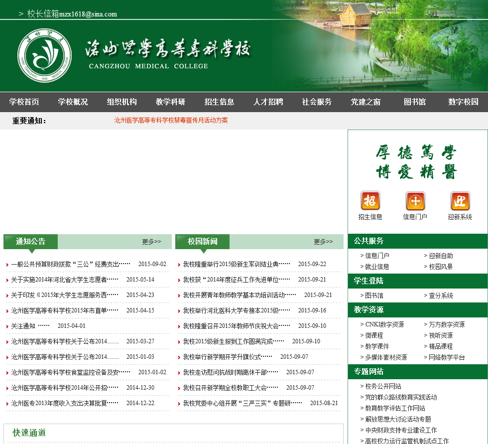 - 网站名称:沧州医学高等专科学校