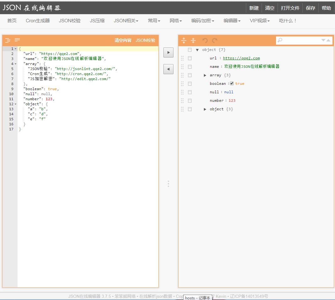 JSON在线编辑器于2020-09-29被0702投稿网收录,网站相关信息来自互联网或网友分享!由于(JSON在线编辑器)网站内容动态属性,时刻在变动,本站无法保证(JSON在线编辑器)网站内容真实可靠!请大家查阅时,谨慎选择、自辩真伪,感谢您的理解与支持。如果您在访问(JSON在线编辑器)时发现:网址失效、或网站存在非法等相关内容,请及时联系我们,我们会第一时间处理。