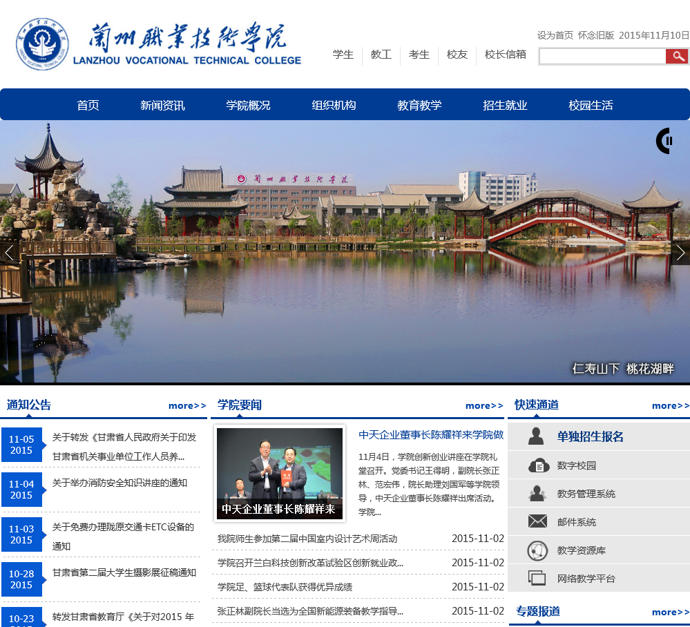 兰州职业技术学院于2020-10-01被0702投稿网收录,网站相关信息来自互联网或网友分享!由于(兰州职业技术学院)网站内容动态属性,时刻在变动,本站无法保证(兰州职业技术学院)网站内容真实可靠!请大家查阅时,谨慎选择、自辩真伪,感谢您的理解与支持。如果您在访问(兰州职业技术学院)时发现:网址失效、或网站存在非法等相关内容,请及时联系我们,我们会第一时间处理。