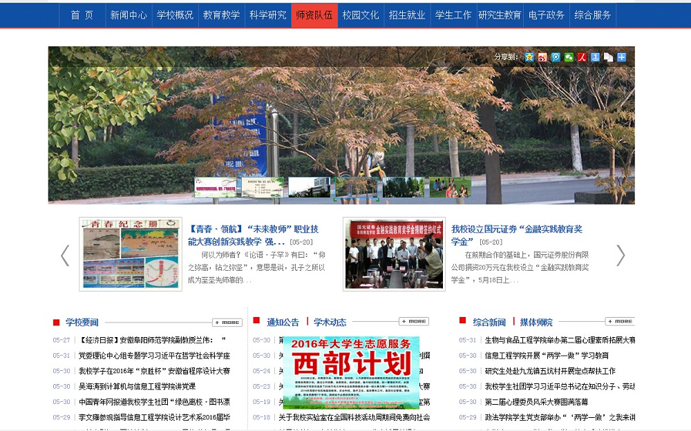 阜阳师范学院于2020-10-01被0702投稿网收录,网站相关信息来自互联网或网友分享!由于(阜阳师范学院)网站内容动态属性,时刻在变动,本站无法保证(阜阳师范学院)网站内容真实可靠!请大家查阅时,谨慎选择、自辩真伪,感谢您的理解与支持。如果您在访问(阜阳师范学院)时发现:网址失效、或网站存在非法等相关内容,请及时联系我们,我们会第一时间处理。