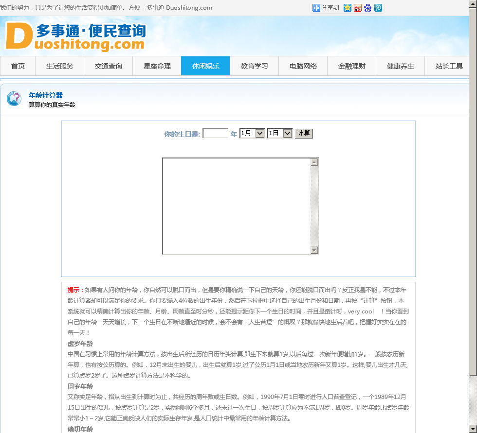 - 网站名称:年龄计算器