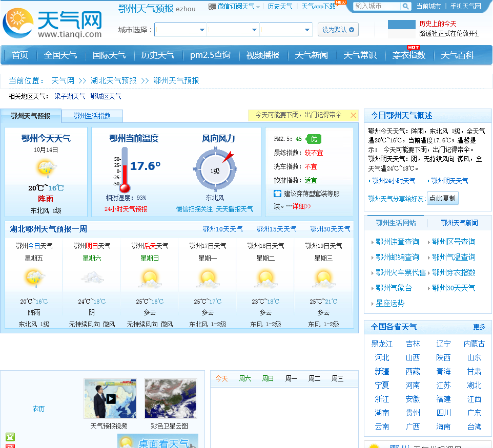鄂州天气预报于2020-10-02被0702投稿网收录,网站相关信息来自互联网或网友分享!由于(鄂州天气预报)网站内容动态属性,时刻在变动,本站无法保证(鄂州天气预报)网站内容真实可靠!请大家查阅时,谨慎选择、自辩真伪,感谢您的理解与支持。如果您在访问(鄂州天气预报)时发现:网址失效、或网站存在非法等相关内容,请及时联系我们,我们会第一时间处理。