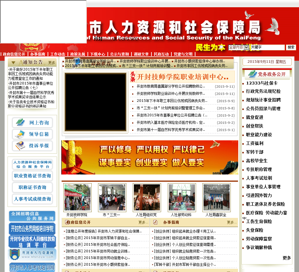开封市人力资源和社会保障局网站是开封市人力资源和社会保障局在互联网上建立的综合性政府门户网站。网站设有“政府信息公开”、“政策法规”、“办事指南”、“县区动态”、“下载中心”、“公示与查询”、“民政互动”等栏目,内容涵盖人力资源和社会保障的方方面面,是开封市人力资源和社会保障系统与社会沟通...
