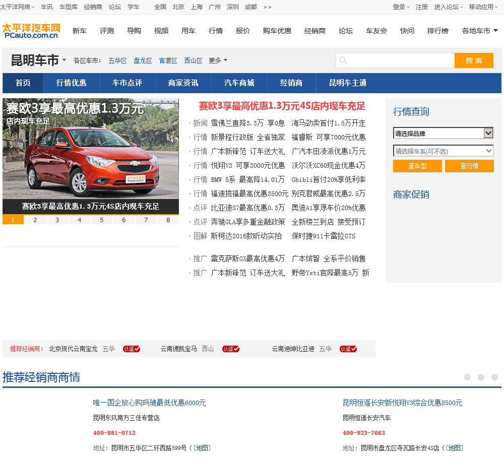 昆明汽车网|昆明车市,太平洋汽车网昆明分站为您提供昆明汽车报价/汽车价格查询、昆明新车资讯/车市行情、昆明汽车团购/经销商信息等。更多昆明汽车资讯,尽在太平洋汽车网昆明车市。