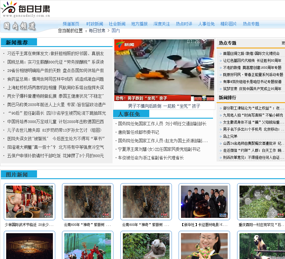 掌握国内资讯,尽在每日甘肃网国内频道。每日甘肃网新闻中心国内频道,纵览国内时政、社会、时事评论及图片等栏目,主要包括时政要闻、地方播报、深度关注、社会新闻、人事任免、时评。