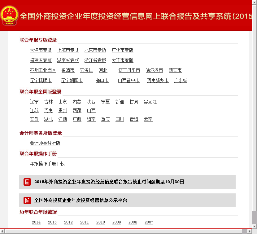 外商投资企业年度运营情况网上联合申报