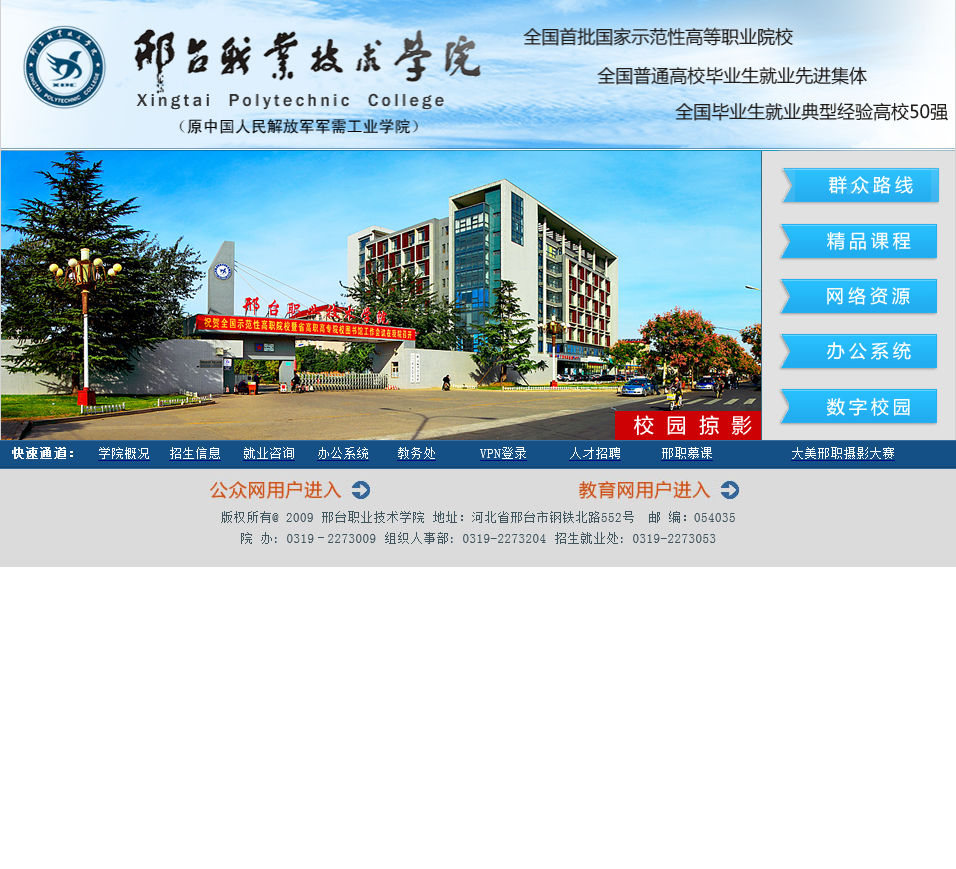 邢台职业技术学院于2020-10-06被0702投稿网收录,网站相关信息来自互联网或网友分享!由于(邢台职业技术学院)网站内容动态属性,时刻在变动,本站无法保证(邢台职业技术学院)网站内容真实可靠!请大家查阅时,谨慎选择、自辩真伪,感谢您的理解与支持。如果您在访问(邢台职业技术学院)时发现:网址失效、或网站存在非法等相关内容,请及时联系我们,我们会第一时间处理。