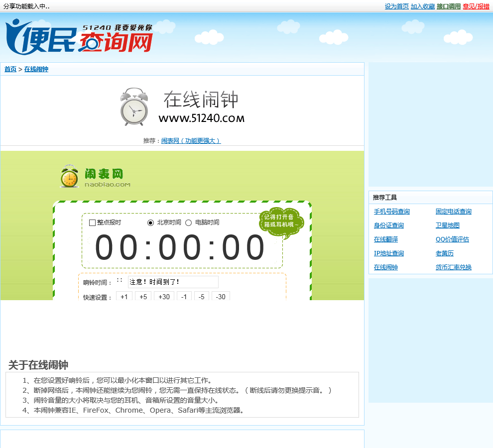 - 网站名称:免费在线闹钟
