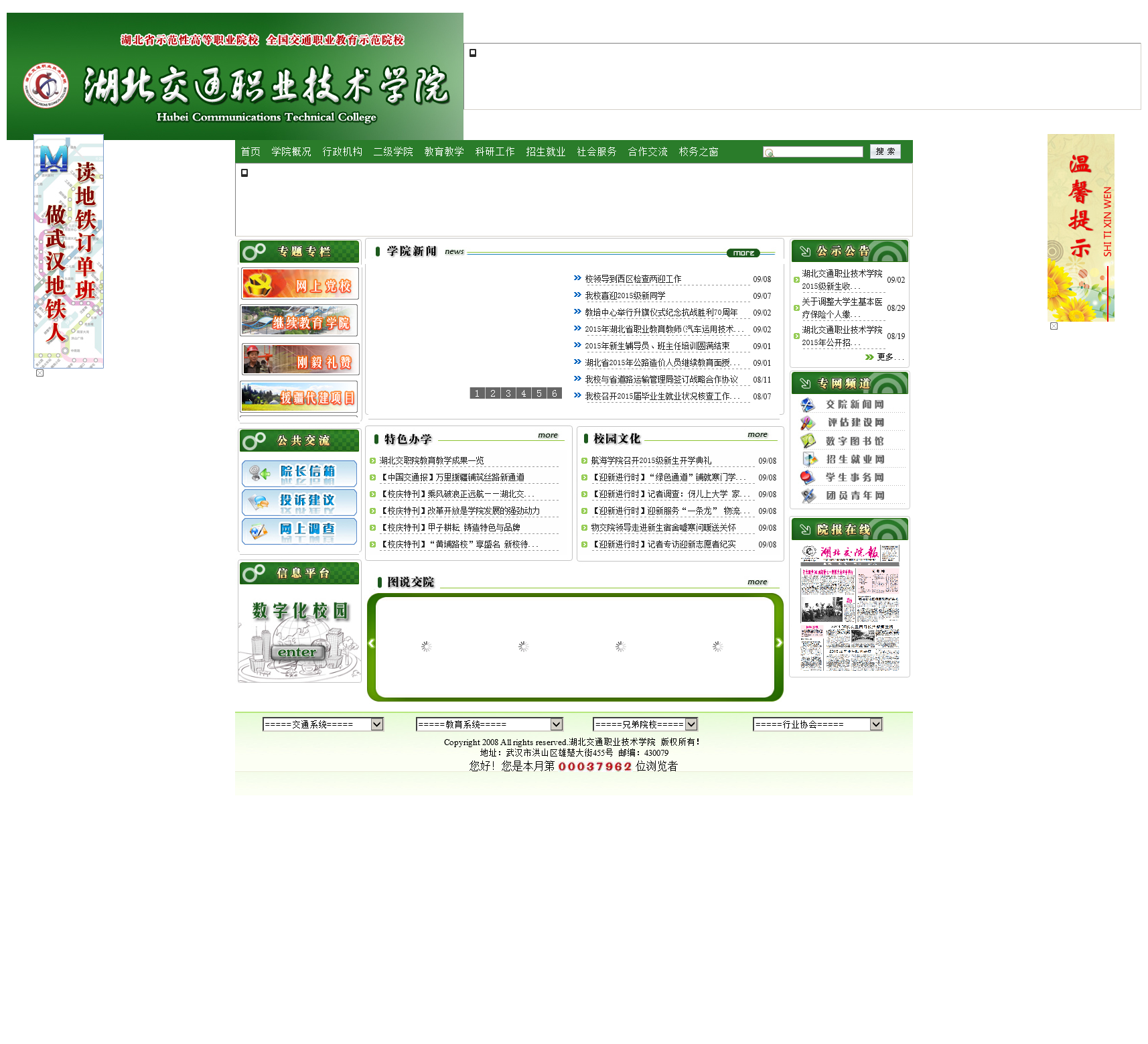 湖北交通职业技术学院于2020-10-06被0702投稿网收录,网站相关信息来自互联网或网友分享!由于(湖北交通职业技术学院)网站内容动态属性,时刻在变动,本站无法保证(湖北交通职业技术学院)网站内容真实可靠!请大家查阅时,谨慎选择、自辩真伪,感谢您的理解与支持。如果您在访问(湖北交通职业技术学院)时发现:网址失效、或网站存在非法等相关内容,请及时联系我们,我们会第一时间处理。