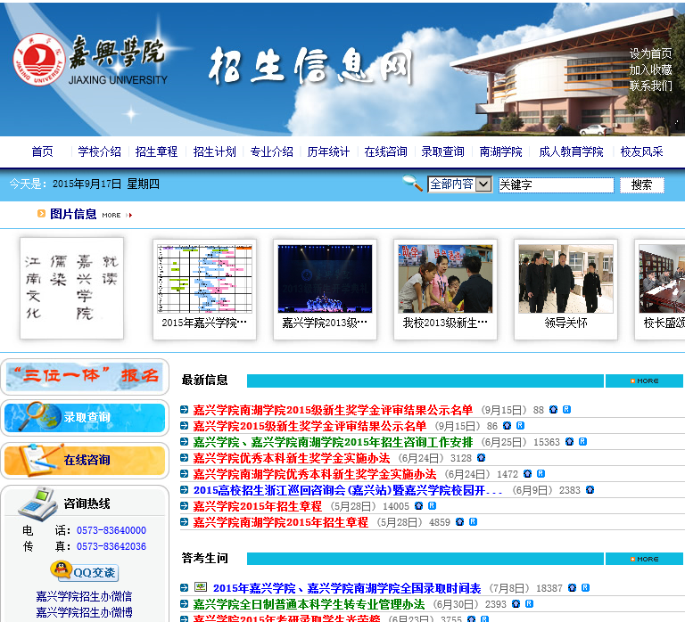 嘉兴学院招生信息网于2020-10-07被0702投稿网收录,网站相关信息来自互联网或网友分享!由于(嘉兴学院招生信息网)网站内容动态属性,时刻在变动,本站无法保证(嘉兴学院招生信息网)网站内容真实可靠!请大家查阅时,谨慎选择、自辩真伪,感谢您的理解与支持。如果您在访问(嘉兴学院招生信息网)时发现:网址失效、或网站存在非法等相关内容,请及时联系我们,我们会第一时间处理。