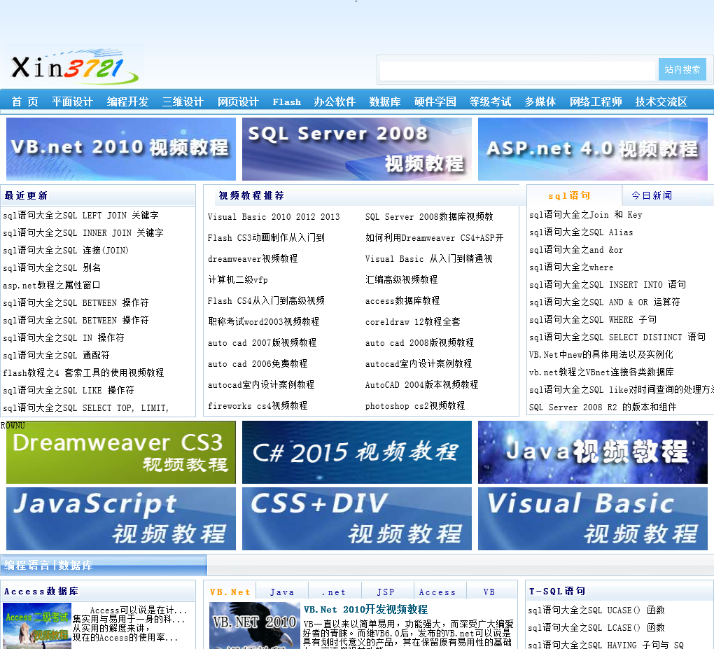 xin3721视频教程网,提供免费视频教程在线观看,包括html视频教程,计算机二级vf教程,div+css视频教程,javascript视频教程,access数据库教程,asp.net教程,vb教程等等