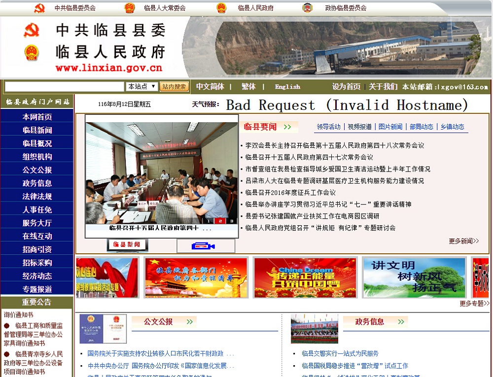 临县政府网于2020-10-08被0702投稿网收录,网站相关信息来自互联网或网友分享!由于(临县政府网)网站内容动态属性,时刻在变动,本站无法保证(临县政府网)网站内容真实可靠!请大家查阅时,谨慎选择、自辩真伪,感谢您的理解与支持。如果您在访问(临县政府网)时发现:网址失效、或网站存在非法等相关内容,请及时联系我们,我们会第一时间处理。