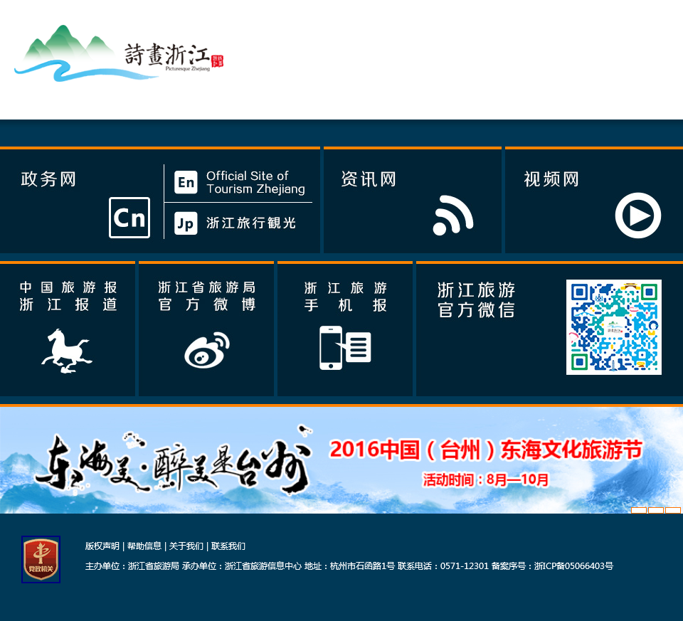 浙江旅游网于2020-10-08被0702投稿网收录,网站相关信息来自互联网或网友分享!由于(浙江旅游网)网站内容动态属性,时刻在变动,本站无法保证(浙江旅游网)网站内容真实可靠!请大家查阅时,谨慎选择、自辩真伪,感谢您的理解与支持。如果您在访问(浙江旅游网)时发现:网址失效、或网站存在非法等相关内容,请及时联系我们,我们会第一时间处理。