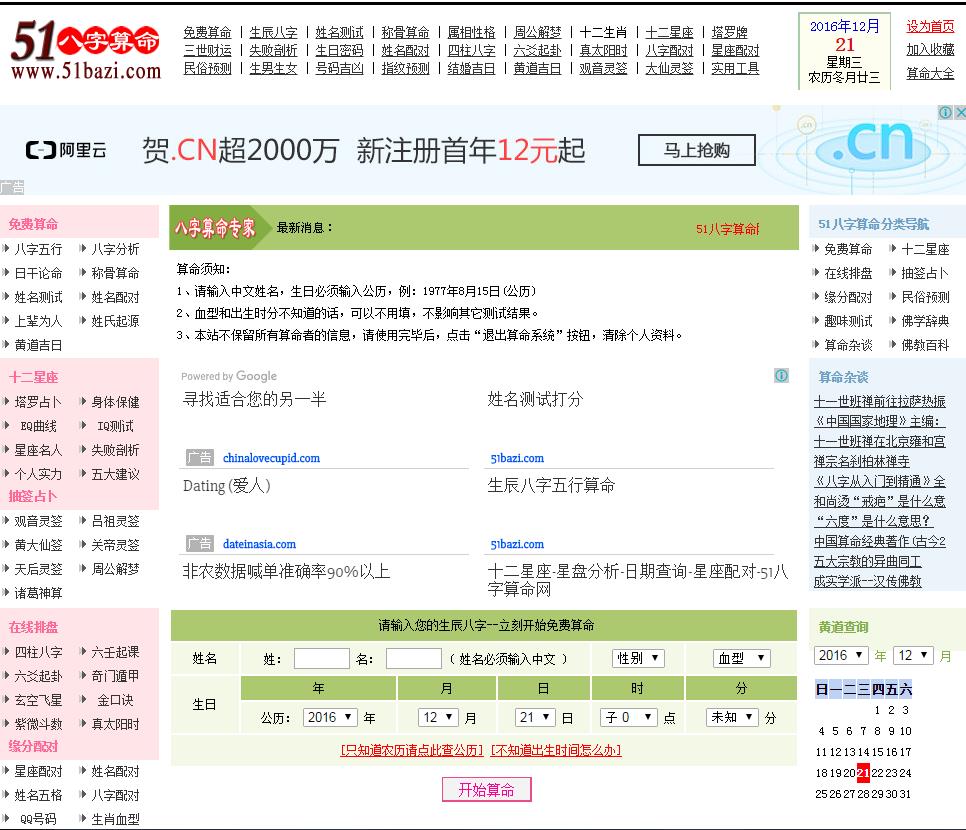 - 网站名称:51八字算命网