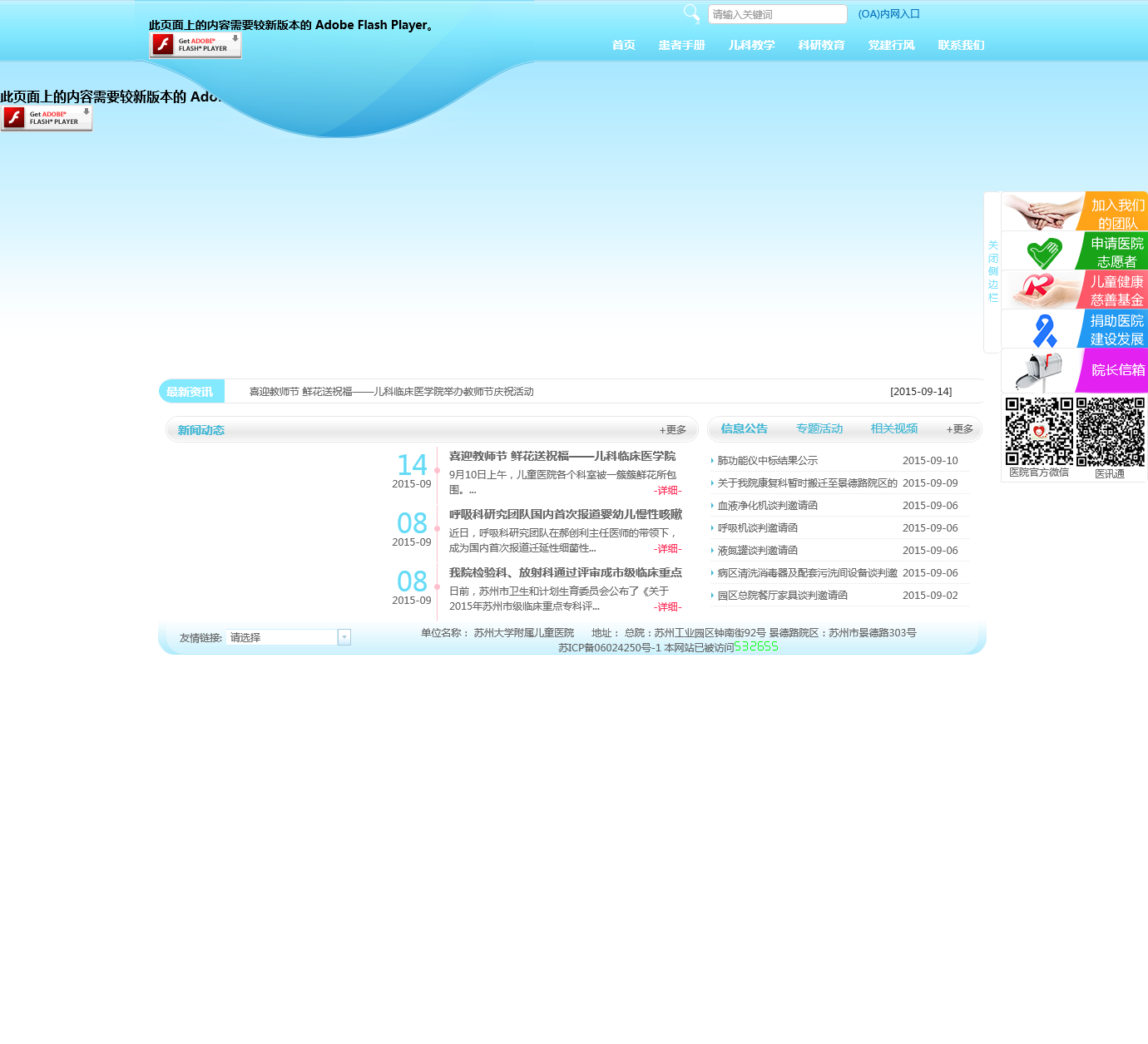 苏州大学附属儿童医院于2020-10-09被0702投稿网收录,网站相关信息来自互联网或网友分享!由于(苏州大学附属儿童医院)网站内容动态属性,时刻在变动,本站无法保证(苏州大学附属儿童医院)网站内容真实可靠!请大家查阅时,谨慎选择、自辩真伪,感谢您的理解与支持。如果您在访问(苏州大学附属儿童医院)时发现:网址失效、或网站存在非法等相关内容,请及时联系我们,我们会第一时间处理。