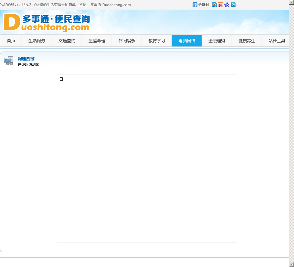 多事通网速测试于2020-10-09被0702投稿网收录,网站相关信息来自互联网或网友分享!由于(多事通网速测试)网站内容动态属性,时刻在变动,本站无法保证(多事通网速测试)网站内容真实可靠!请大家查阅时,谨慎选择、自辩真伪,感谢您的理解与支持。如果您在访问(多事通网速测试)时发现:网址失效、或网站存在非法等相关内容,请及时联系我们,我们会第一时间处理。