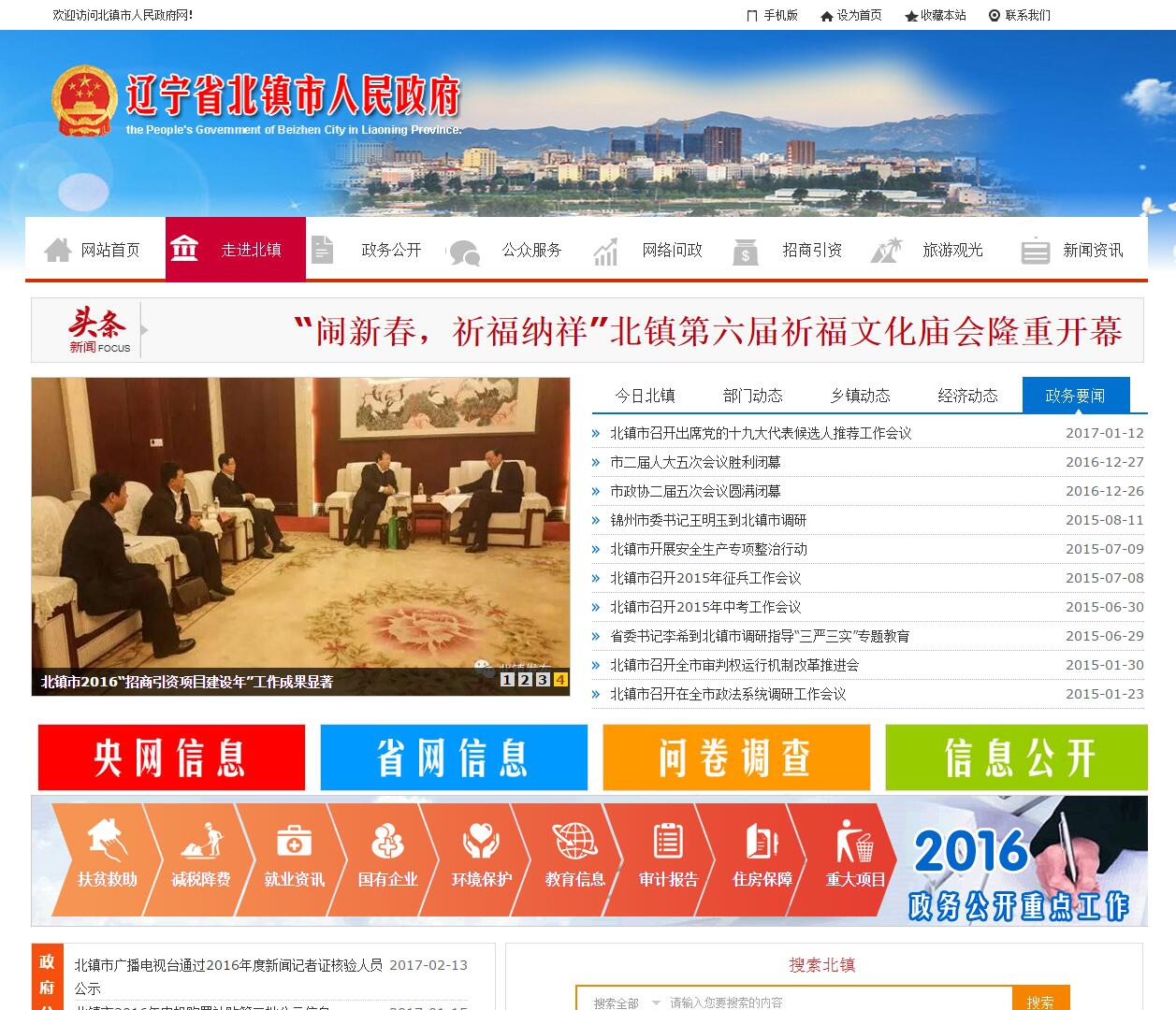 北镇市人民政府网站是北镇市走向世界的重要窗口, 是政府和百姓沟通的桥梁,是宣传推介北镇市、促进政务公开、为民服务等政务网络门户网站。