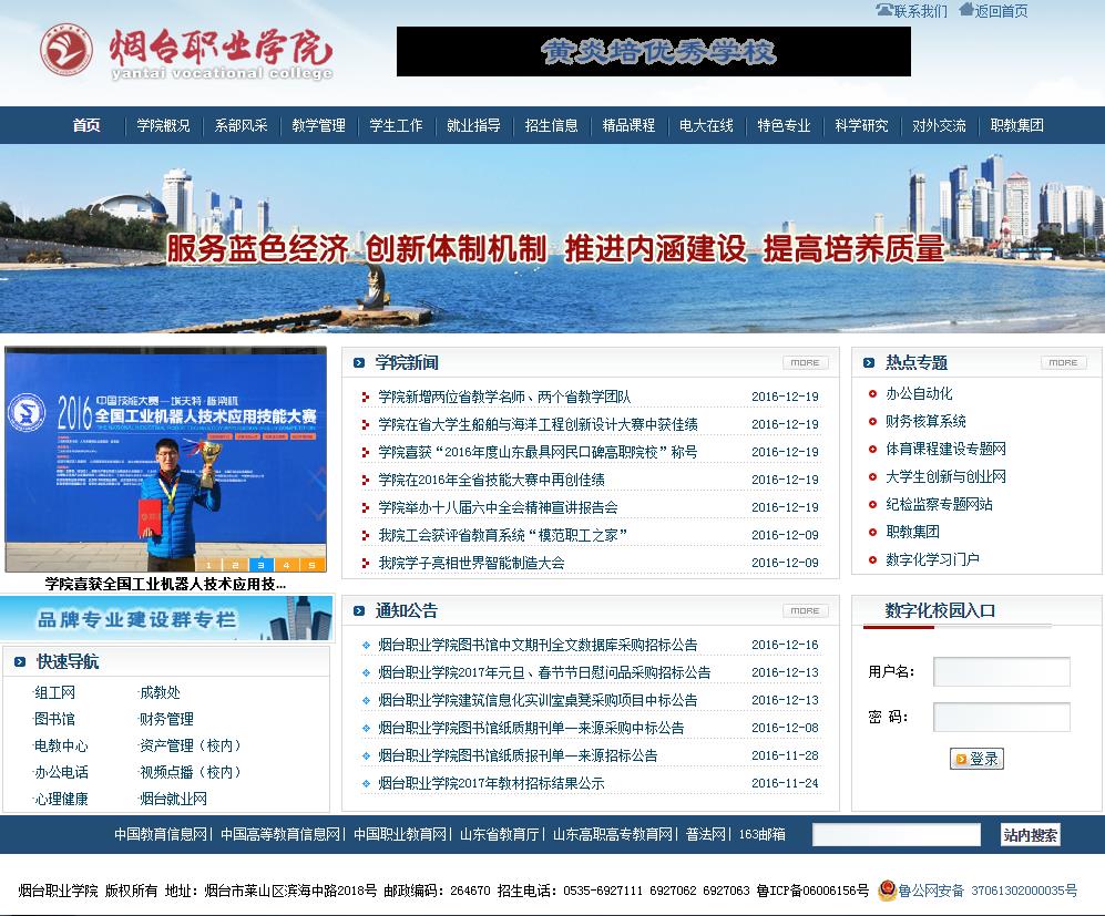 烟台职业学院于2020-10-10被0702投稿网收录,网站相关信息来自互联网或网友分享!由于(烟台职业学院)网站内容动态属性,时刻在变动,本站无法保证(烟台职业学院)网站内容真实可靠!请大家查阅时,谨慎选择、自辩真伪,感谢您的理解与支持。如果您在访问(烟台职业学院)时发现:网址失效、或网站存在非法等相关内容,请及时联系我们,我们会第一时间处理。