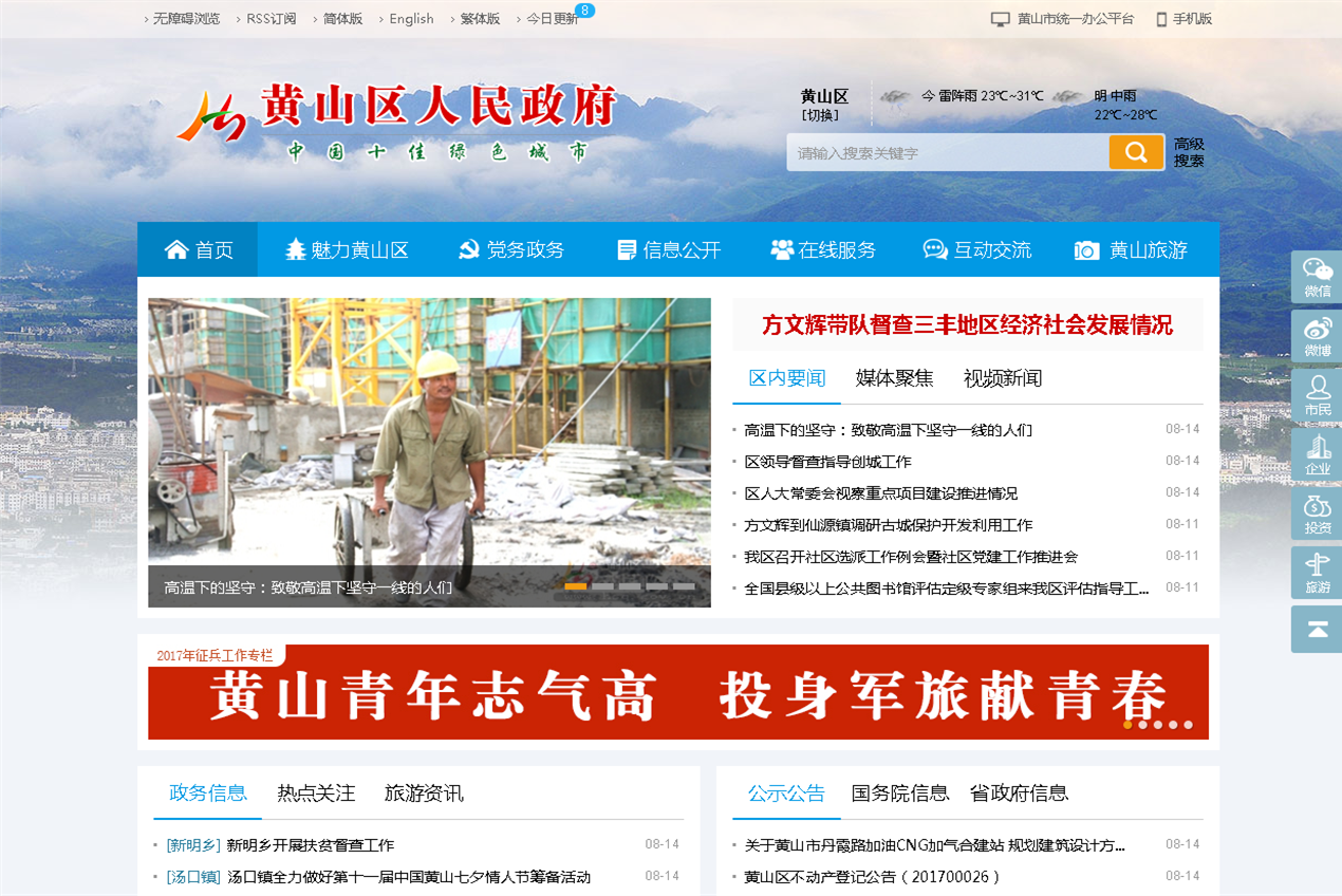 黄山区人民政府网于2020-10-10被0702投稿网收录,网站相关信息来自互联网或网友分享!由于(黄山区人民政府网)网站内容动态属性,时刻在变动,本站无法保证(黄山区人民政府网)网站内容真实可靠!请大家查阅时,谨慎选择、自辩真伪,感谢您的理解与支持。如果您在访问(黄山区人民政府网)时发现:网址失效、或网站存在非法等相关内容,请及时联系我们,我们会第一时间处理。