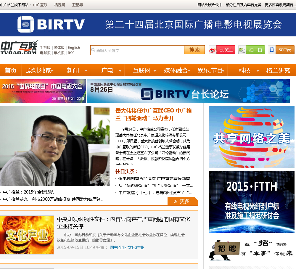 中广互联于2020-10-11被0702投稿网收录,网站相关信息来自互联网或网友分享!由于(中广互联)网站内容动态属性,时刻在变动,本站无法保证(中广互联)网站内容真实可靠!请大家查阅时,谨慎选择、自辩真伪,感谢您的理解与支持。如果您在访问(中广互联)时发现:网址失效、或网站存在非法等相关内容,请及时联系我们,我们会第一时间处理。